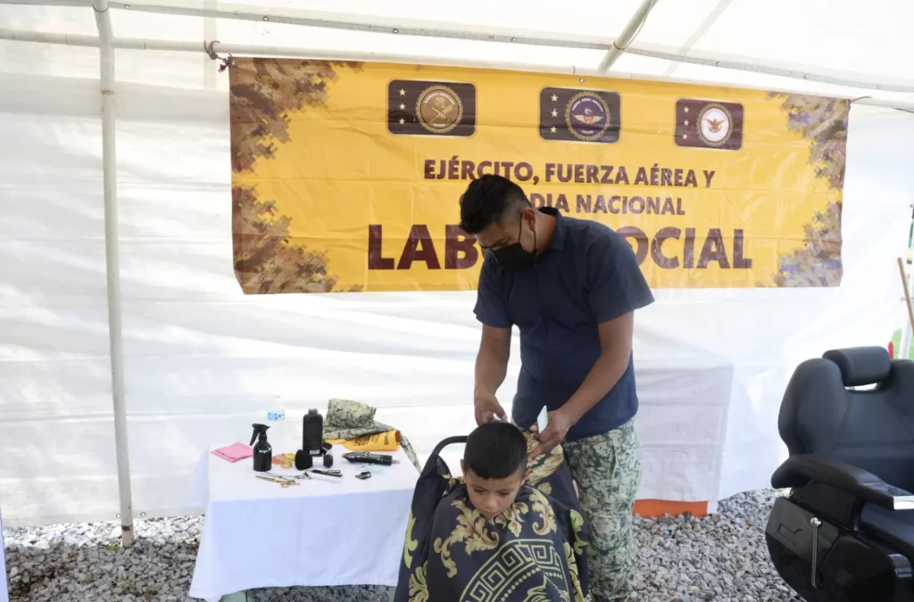 La jornada contó con la colaboración del 41 Batallón de Infantería de la SEDENA, cuyos elementos apoyaron en labores de bienestar social realizando 150 cortes de cabello, un servicio complementario muy valorado por los asistentes.