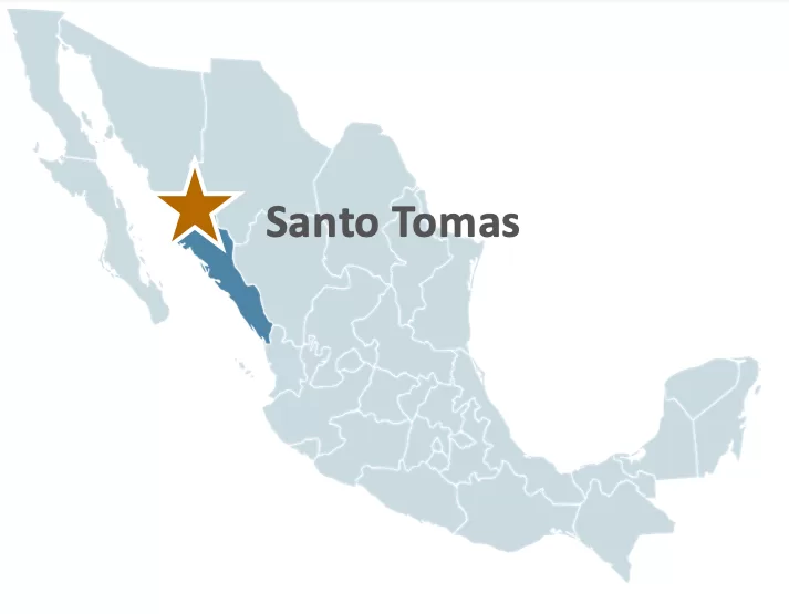 El Proyecto Santo Tomás, ubicado en el noroeste de México, abarca más de 9,000 hectáreas y contiene importantes depósitos de pórfido de cobre definidos mediante más de 30,000 metros de perforación histórica y 48,000 metros adicionales en campañas recientes. El proyecto se encuentra a 170 kilómetros del puerto de Topolobampo, con acceso por carretera, ferrocarril, red eléctrica y gasoducto.