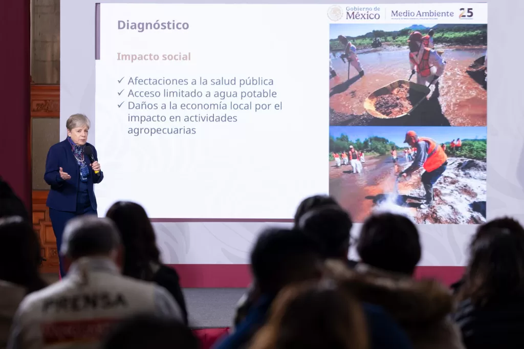 La secretaria de Medio Ambiente y Recursos Naturales, Alicia Bárcena Ibarra, señaló que el Plan de Justicia busca resarcir los daños ocasionados por la contaminación del río Sonora, derivada del derrame de 40 mil metros cúbicos de sulfato de cobre ocurrido el 6 de agosto de 2014, que afectó 288.8 kilómetros de la cuenca Bacanuchi–río Sonora y a más de 20 mil personas en comunidades como Arizpe, Aconchi, Banámichi, Baviácora y Ures. Para estas acciones, el Gobierno de México invertirá mil 500 millones de pesos.